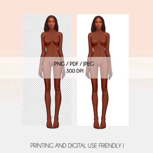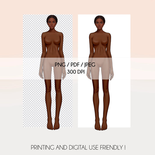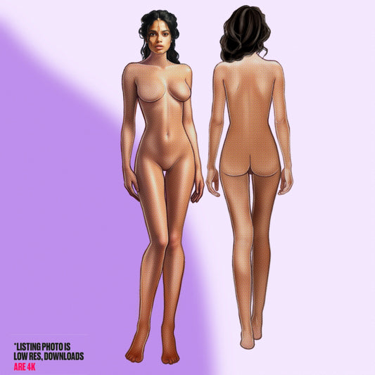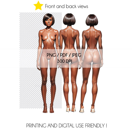 [Front and Back] Female Fashion Croquis - Brazilian/Caucasian/Black/Brown Hair
