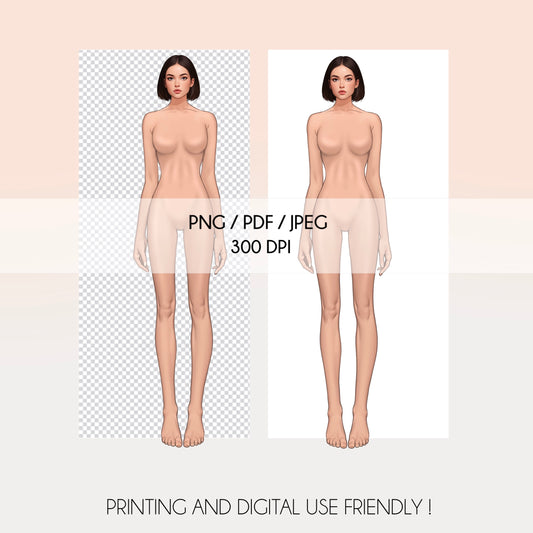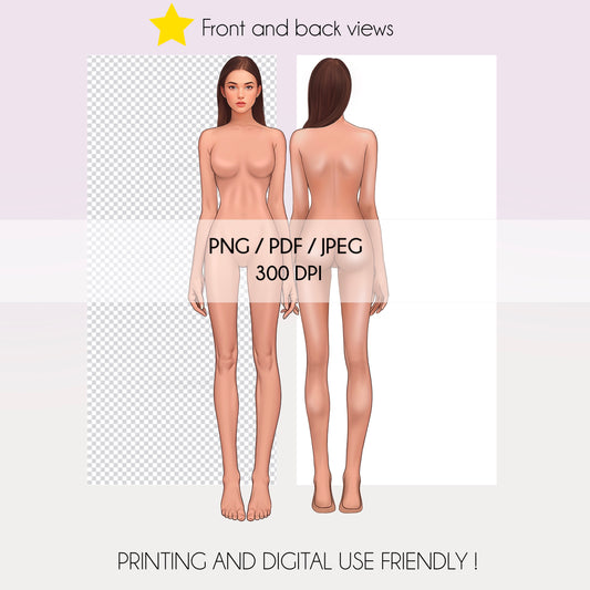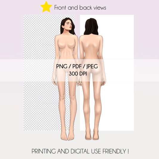 [Front and Back] Female Fashion Croquis - Caucasian/ Black Hair