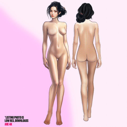 [Front and Back] Female Fashion Croquis - Japanese/Asian/ Black Hair