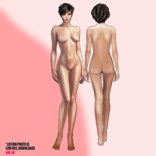 [Front and Back] Female Fashion Croquis - British/ Caucasian/ Short Brown Hair