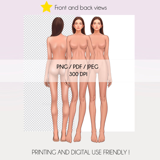 [Front and Back] Female Fashion Croquis - Caucasian/ Brown Hair