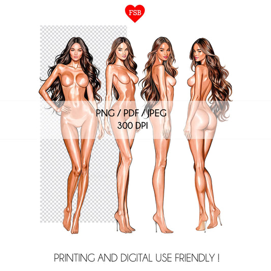[4 Poses] Female Fashion Croquis - Caucasian/ Brown Hair