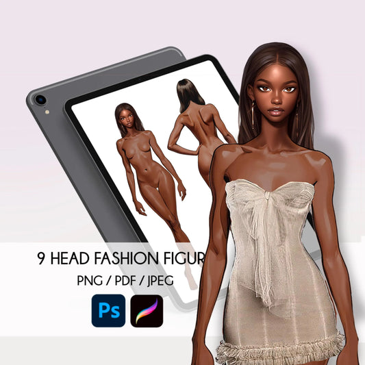 [Single] Female Fashion Croquis - Black/ Brown Hair