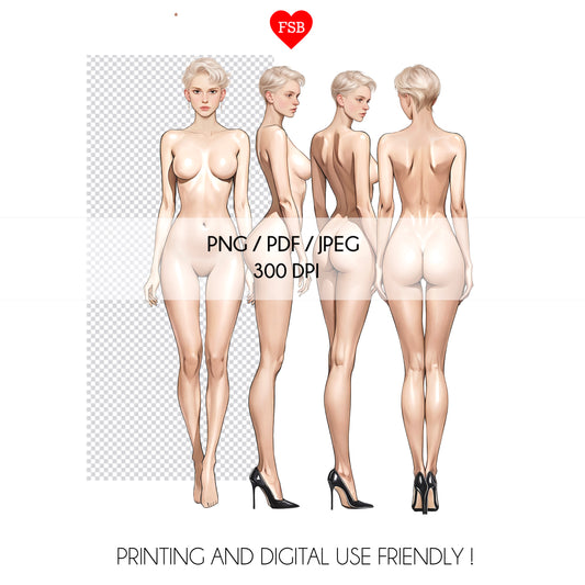 [4 Poses] Female Fashion Croquis - Caucasian/ Short Blonde Hair