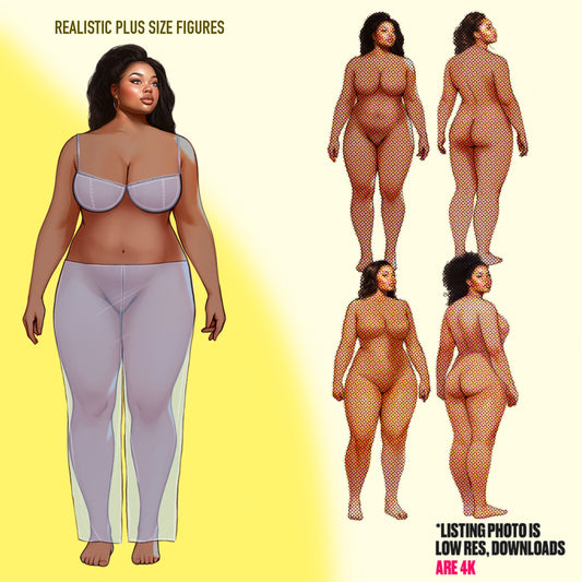 [4 Poses] Plus-size Female Fashion Croquis - Black/ Black Hair + Brushes