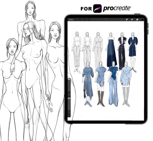 [COMBO][Front and Back] Female Fashion Croquis - Caucasian/Asian/Black + Procreate Stamps